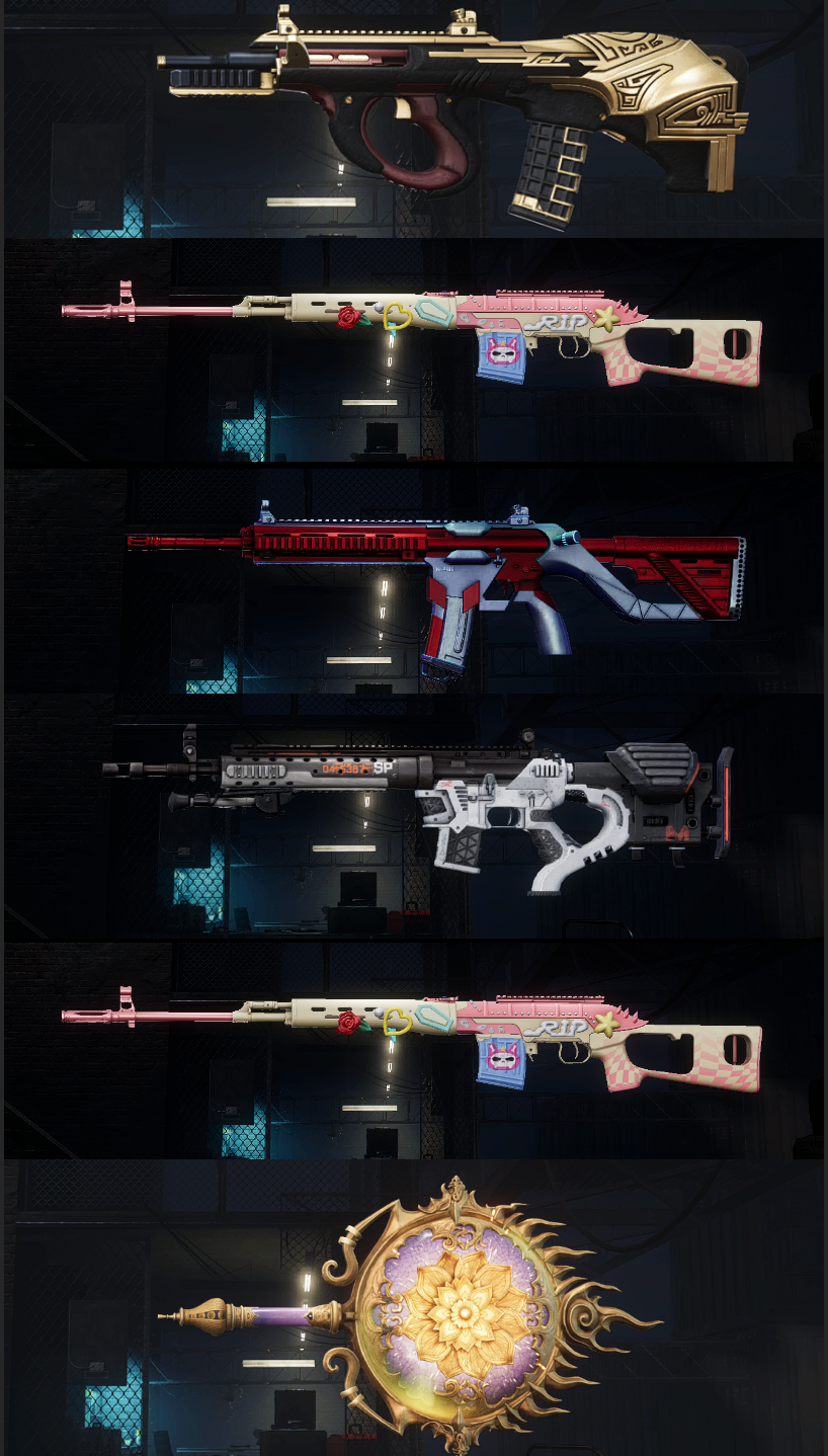 装备描述:杜卡迪✌悲喜套✌【七成长武器✌满级唐三藏平底锅✌③无信号M416✌弥诺AUG✌②赛波MK12✌妖魔之触AC✌粉梦德拉贡✌无重力MP5K】老爷车✌双马尾套✌发光臂✌毛绒卫衣蓝+黑✌雨中漫步夹克✌夺目寒光M762✌无慈悲K2✌彩糖AUG✌糖果ACE