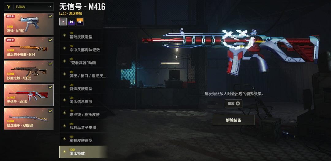 ⑩级无信号M4✅寒蚀MP5K✅妖魔ACE✅夜曲M24✅猛虎98k✅白运动黄东绿东拉风龙烟枪