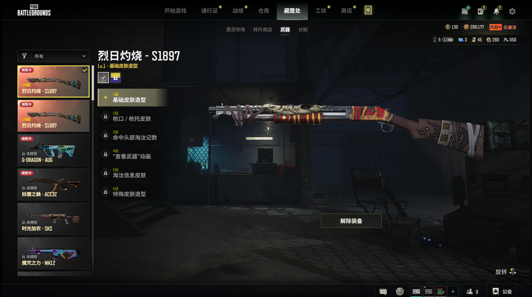可排位五级美杜莎762三级惊魂98K烈日1897枫叶滑雪17战队套装疯狂科学家武器套装