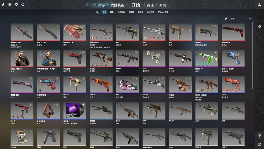 完美B+✅5E2059(授信)✅双刀✅自动化蝴蝶✅血槽M9✅深红之网✅血腥运动✅印花集✅禁官匹
