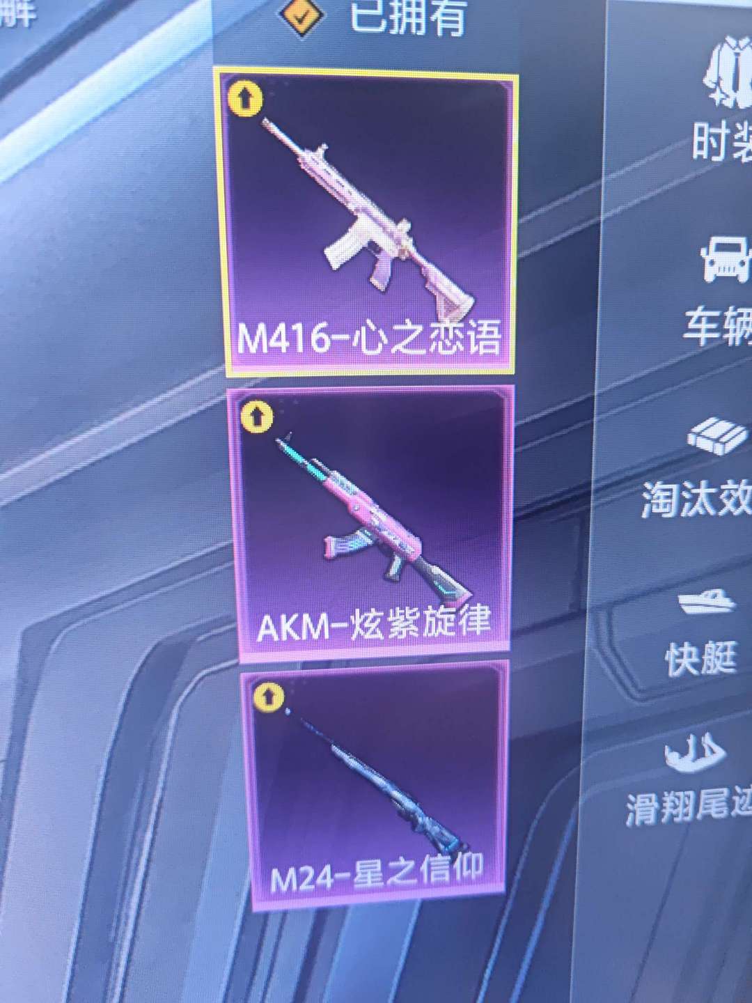 极品稀有号,马丁-特斯拉-梦幻火箭车皮,M4心之恋语_Ak炫紫旋律满改枪皮。还有极品套装衣服