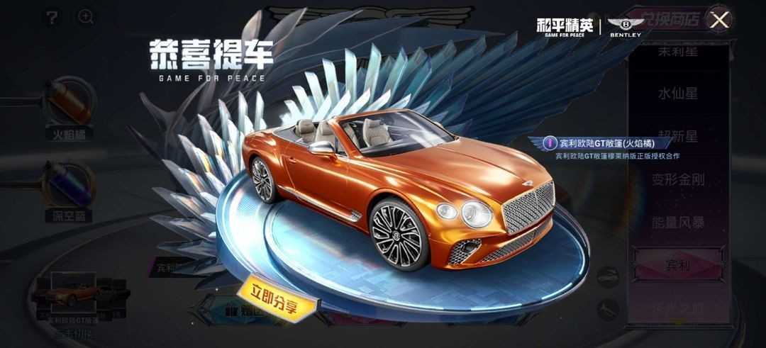 满级路特斯宾利敞篷跑车迈凯伦玛莎拉蒂大话西游盖世英雄✨飞机11载⑳粉特效枪