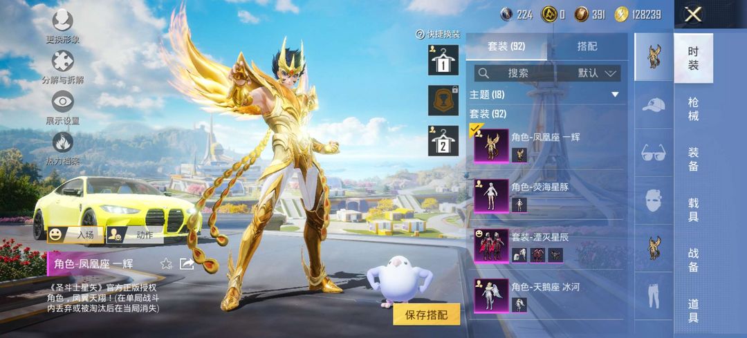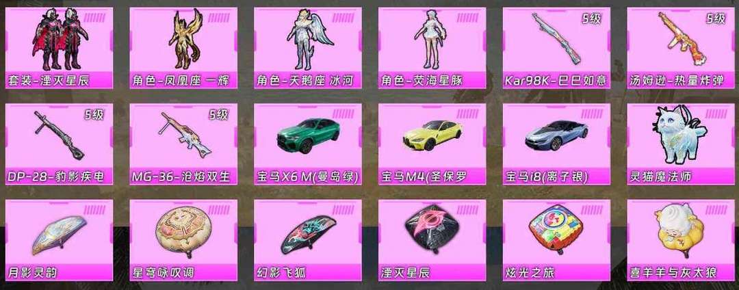 双字id 戏菬 (圣斗士角色)3款常用车皮肤 宝马系列,4升级枪,4粉装,3玩偶服