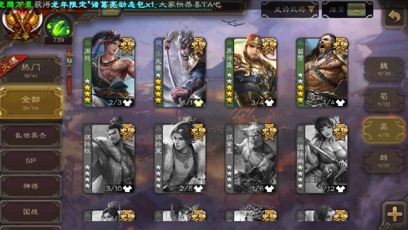 限制: 撤单率<80%才可租用此帐号装备描述:【有点将卡】大将军◆动刘焉◆神甘宁◆动徐荣◆61史诗神赵云神刘备文鸯界钟会戏志才马钧界徐盛留赞