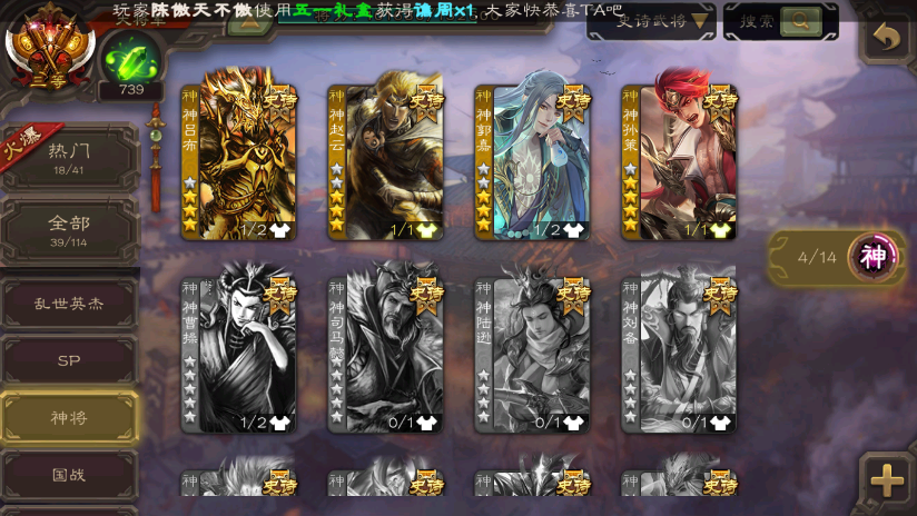【有点将卡】一等大将军74史诗-动刘焉-回廊动徐荣-动神甘宁杨彪动态神赵云马钧杜预大宝动界左慈
