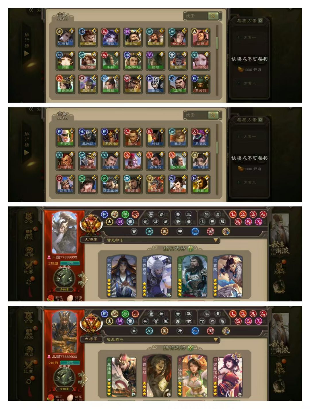 限制: 撤单率<19%才可租用此帐号装备描述:官方三等大将军,无卡,VIP11! 2五星炎龙:动灵魂歌王留赞,动曹纯! 8四星玉龙:动戏志才动界黄忠动谋孙尚香,金界徐盛金界沮授,曹髦祢衡! 50史诗武将,动界钟会,南华老仙谋夏侯氏星甘宁神赵云等! 30动皮76金皮180国战皮肤!