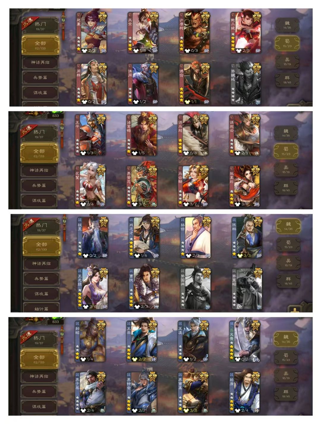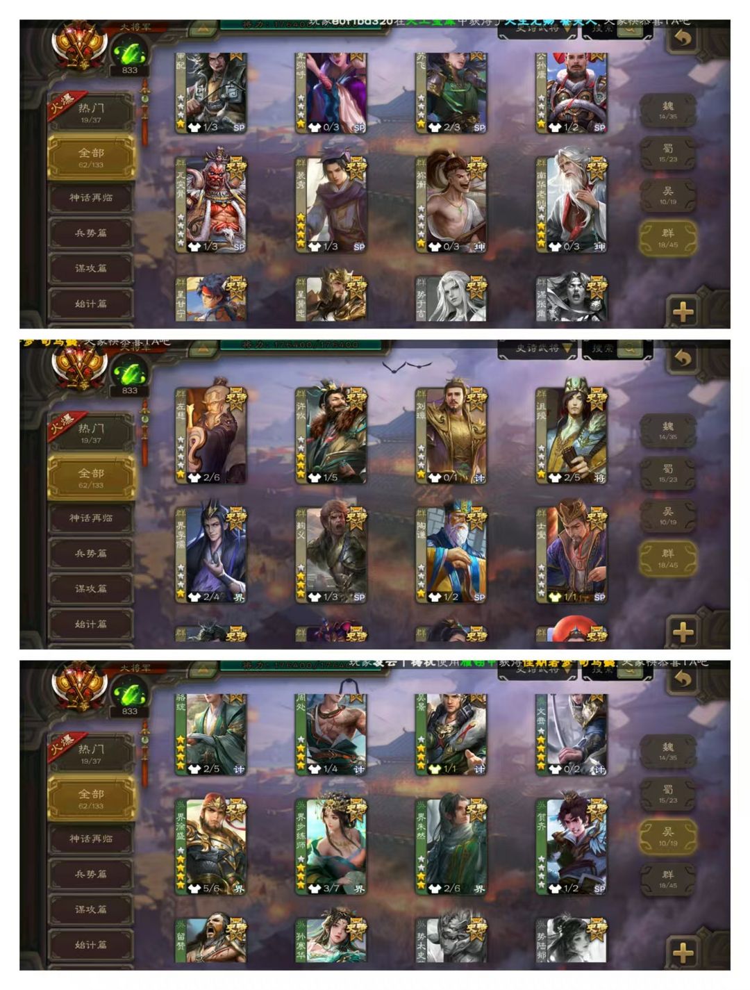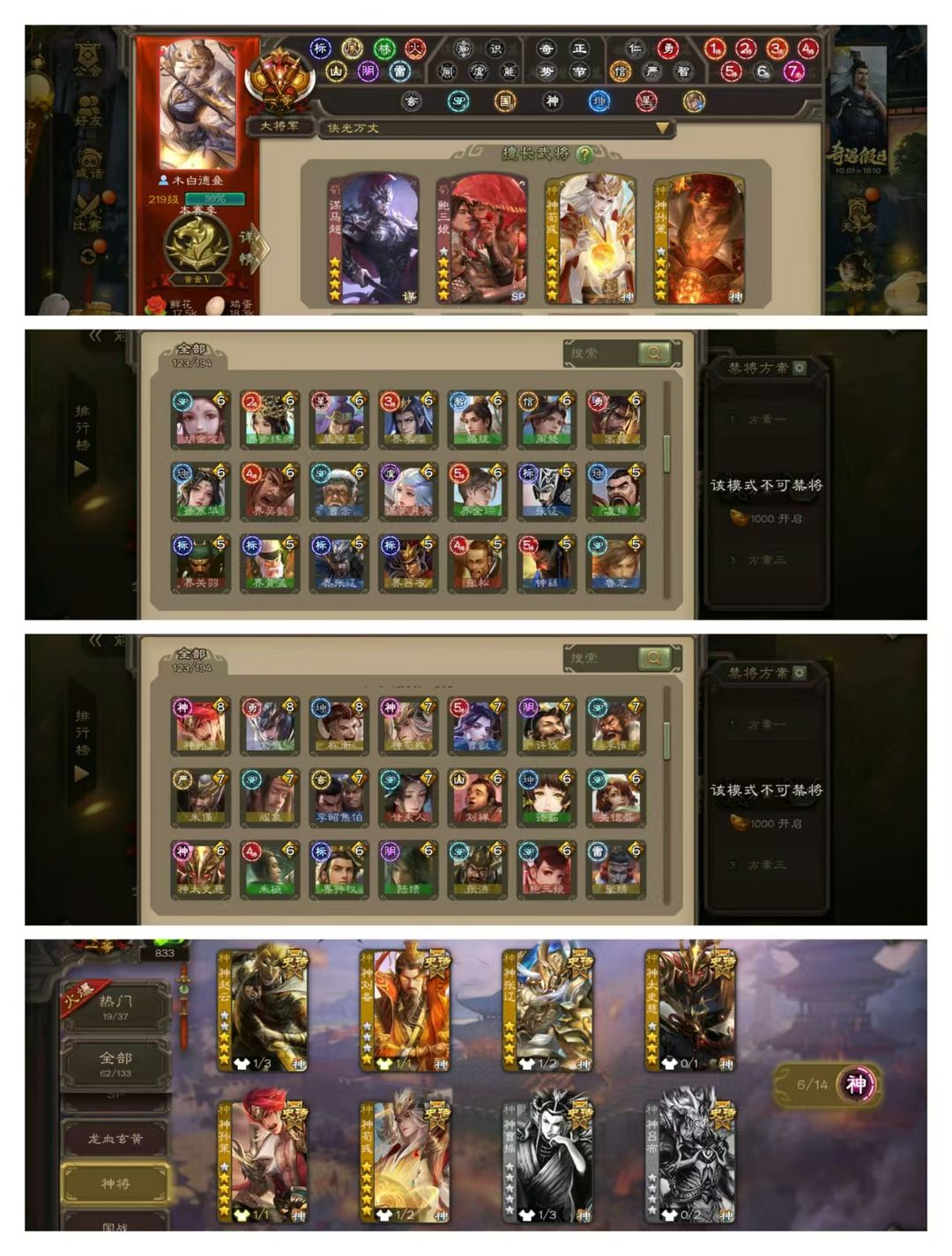 限制: 撤单率<19%才可租用此帐号装备描述:官方一等大将军,无卡,VIP13! 3五星炎龙:回廊动孙寒华! 15四星玉龙:回廊动神孙策,回廊动星甘宁,动神荀彧动留赞动界孙权,金神关羽,骆统! 62史诗武将,回廊动张星彩,回廊动界黄忠,回廊动谋马超,动鲍三娘动王元姬动王璨,金界徐盛金界钟会金界李儒,文鸯裴秀傅佥聚义神太史慈神赵云南华老仙周处刘璋等! 78动皮170金皮250国战皮肤!