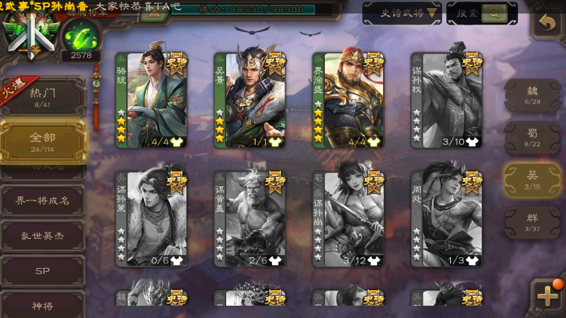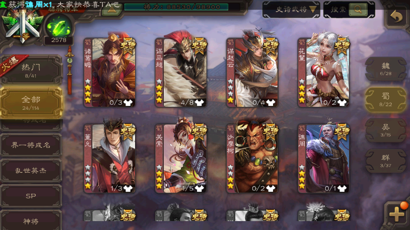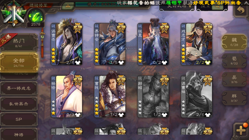 【有点将卡】动神荀彧-动谋曹丕-谋诸葛亮-界钟会-动界徐盛(大宝)动戏志才-沙摩柯关索骆统吴景神刘备