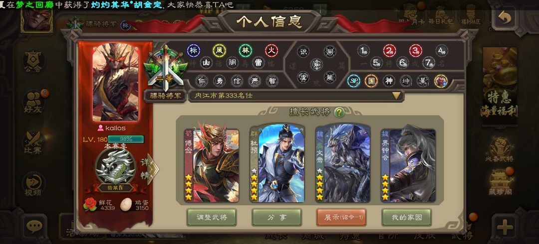 限制: 撤单率<80%才可租用此帐号装备描述:请勿挂机,请勿扣分。 文明游戏,谢谢配合。 官网严厉打击外挂、美化包等非法软件,一但使用必废号并追究法律责任