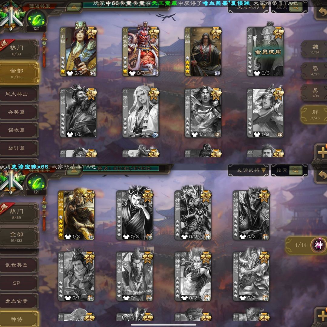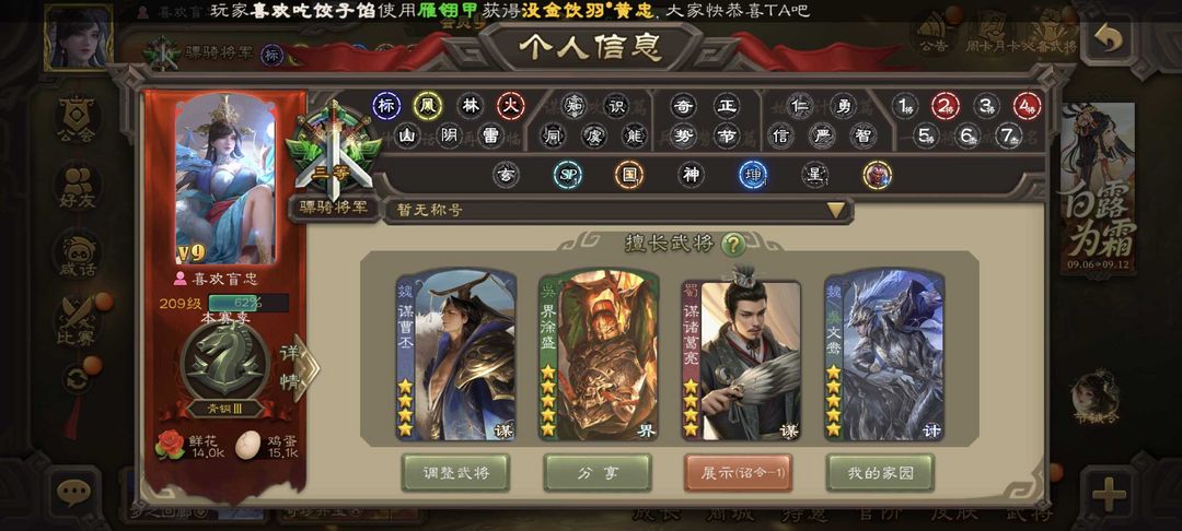 装备描述:动态谋曹丕回廊文鸯谋诸葛亮动态界徐盛留赞花鬘动神赵云
