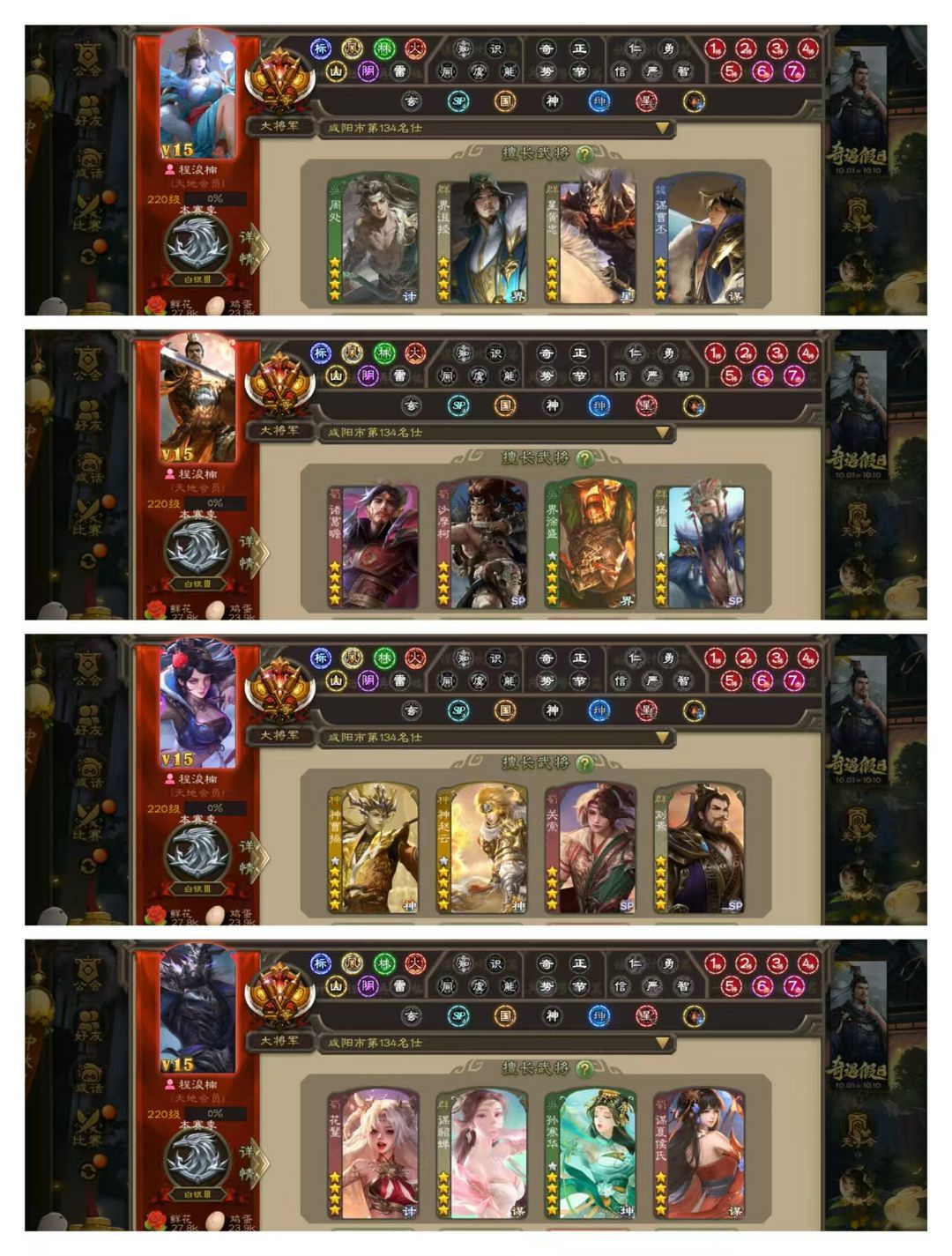 限制: 撤单率<19%才可租用此帐号装备描述:官方二等大将军,无卡,VIP15! 36四星玉龙:回廊动谋关羽,回廊动谋刘备,回廊动谋诸葛亮,回廊动谋黄忠,回廊动沙摩柯,回廊动孙寒华,回廊动谋曹操,动刘焉动神曹操动谋曹丕动谋貂蝉,动花鬘动神赵云动关索动谋孙尚香,动谋黄月英动谋赵云动谋法正,金界沮授金谋陆逊金杨彪金诸葛瞻金星黄忠,神华佗神太史慈谋夏侯氏,星魏延南华老仙张让! 50史诗武将,回廊动界徐盛,动周处,十常侍星甘宁郑玄郝昭留赞等! 42动皮115金皮215国战皮肤!