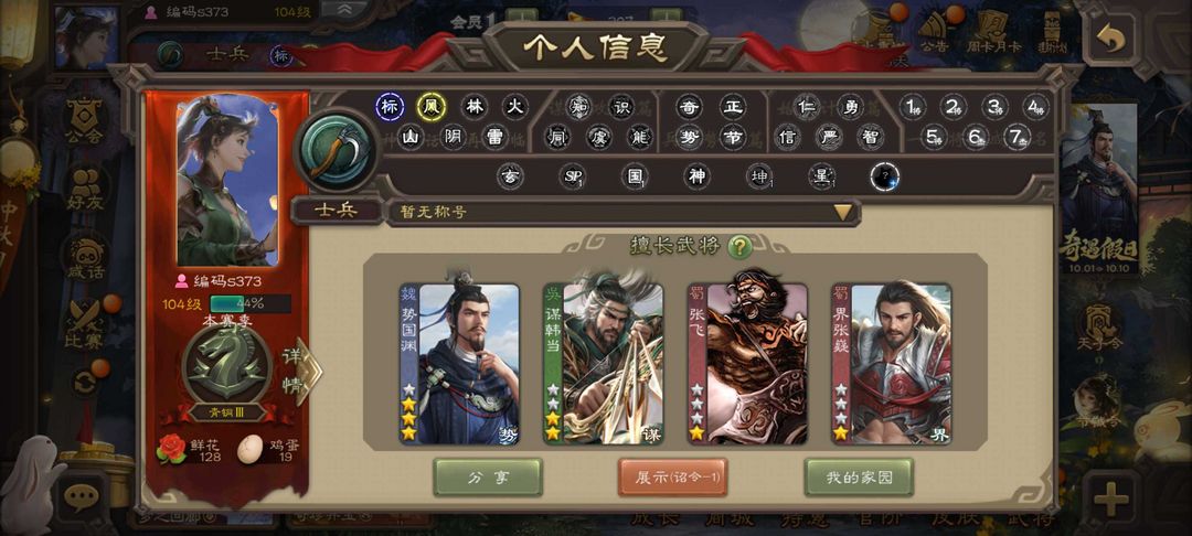 限制: 撤单率<100%才可租用此帐号装备描述:【有卡】低官阶炸鱼势国渊/戏志才/谯周/体验蹲坑的快乐,国渊可无限点将 感谢支持~请勿挂机逃跑!乱砸菜篮、恶意撤单永久拉黑!全时段监控撤单秒顶号!想恶意白玩的可以离开了!文明游戏谢谢感谢老板们支持祝您游戏愉快~满意请好评刷起~收藏起来!!