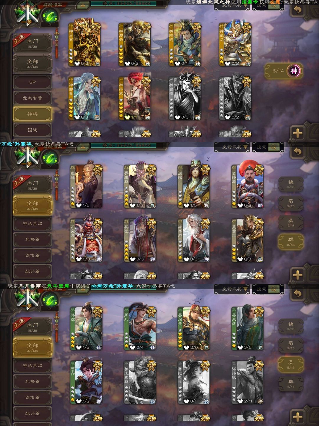 有卡三卡⭐势魏延⭐神郭嘉⭐动神孙策⭐动谋黄忠⭐杨彪⭐马均⭐大宝⭐