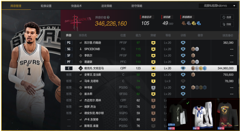 ✨【ZL♥10突文班亚马✅可排位】全服稀有♥马刺状元♥10文班亚马♥易建联♥李凯尔