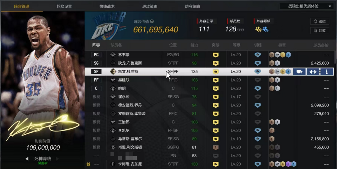 租4送1角色名:10雷霆双时刻杜兰特10体验纽约甜瓜安东尼