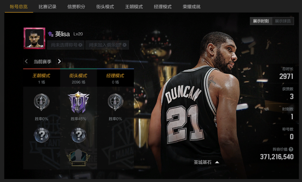 ⭐可排位,段位:巨星⭐六突04邓肯,带时刻圣城基石⭐最新陈列室全能邓肯⭐