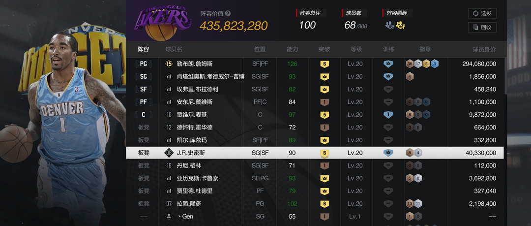 20湖人队套 6突双时刻15骑士詹姆斯+6突历史JR史密斯