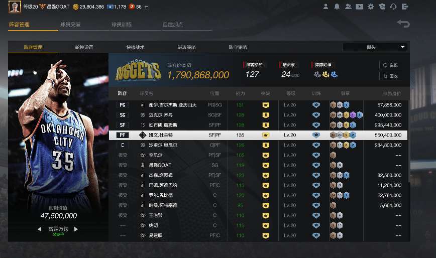 装备描述:满突雷霆杜兰特+6突詹姆斯+6突95乔+6突奥尼尔+满鸭梨。 三模式通吃!!!无球车队、拉屎拖分最佳选择。【请爱护账号,恶意掉信誉分、乱打分、因信誉分投诉撤单的一律拉黑。】祝老板玩的开心!!