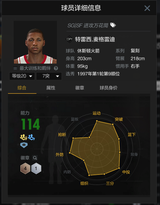 限制: 租号1次及以上 |装备描述:五个满突复刻,复刻满乔丹/满大梦/满奥尼尔/满麦迪/满拉塞尔,全服第一。娱乐性拉满,带六突纽约甜瓜两亿多阵容。
