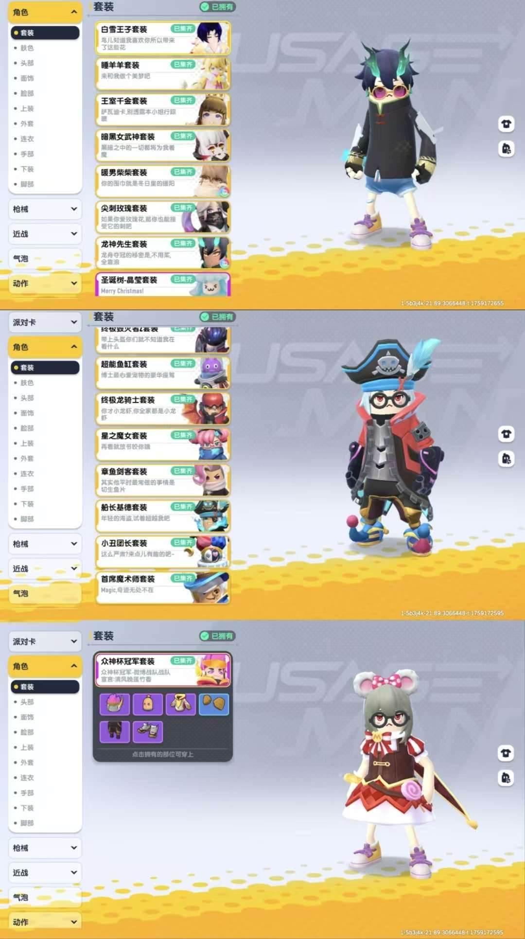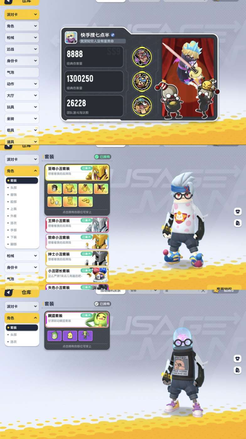 52万美味值全赛季+龙包冠军裤+彩虹全集齐+甘源联动皮+摸金小丑全套