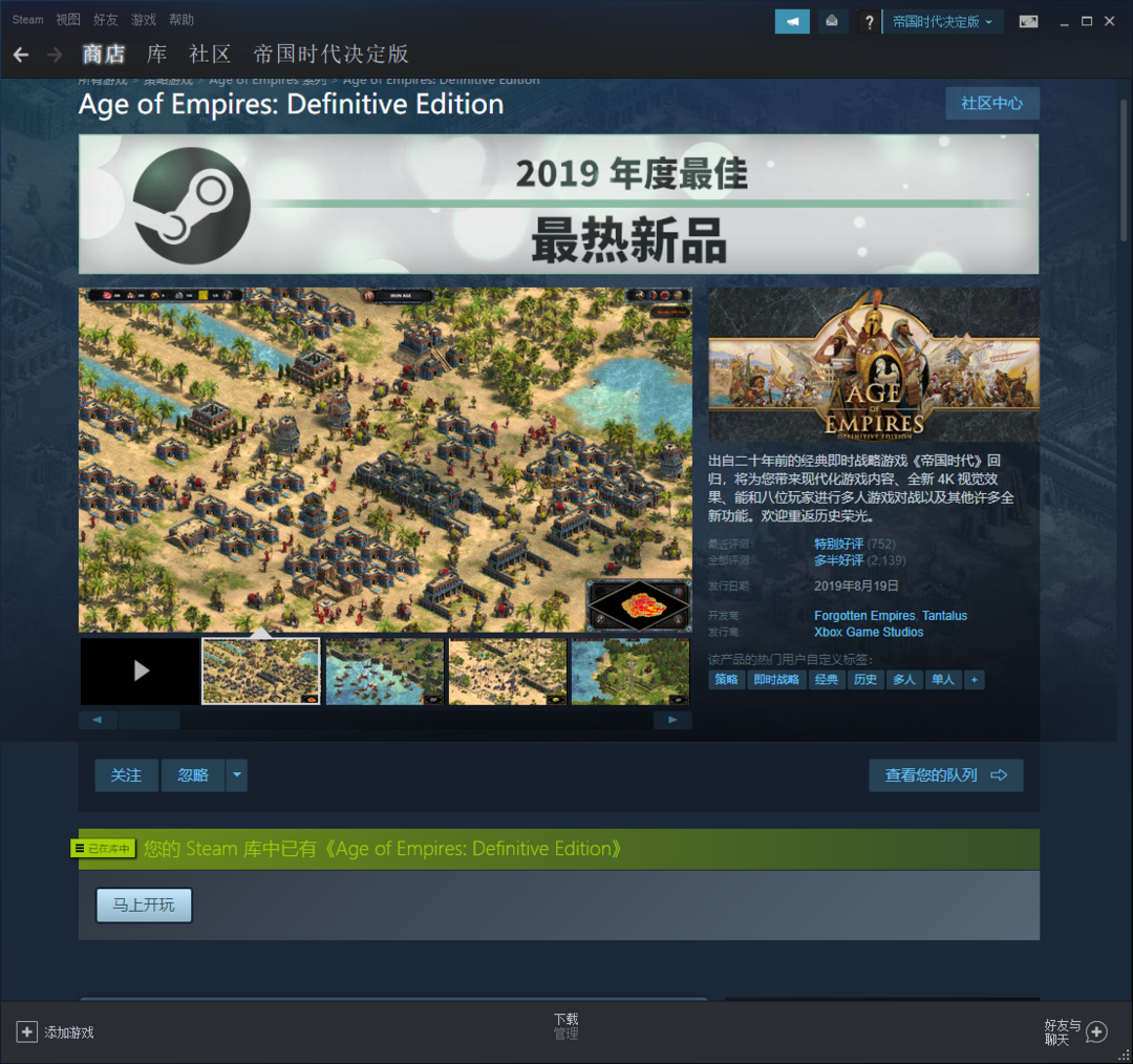 装备描述:出自二十年前的经典即时战略游戏《帝国时代》回归,将为您带来现代化游戏内容、全新 4K 视觉效果、能和八位玩家进行多人游戏对战以及其他许多全新功能。欢迎重返历史荣光。